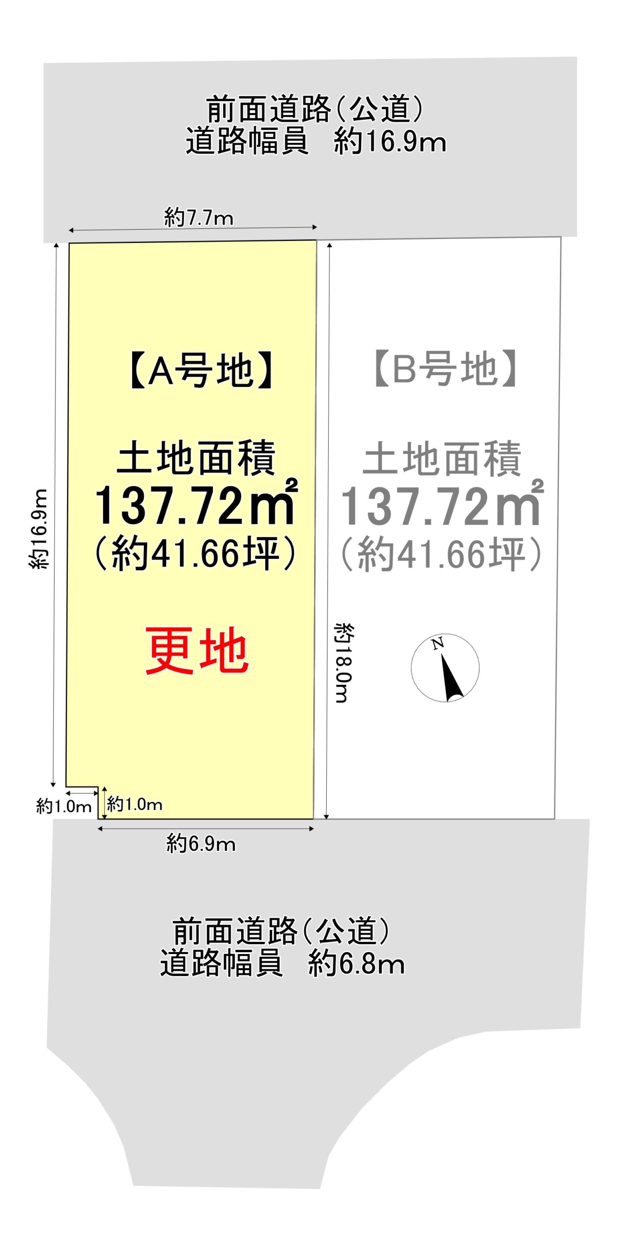 土地面積 実測137.72㎡(約41.66坪)