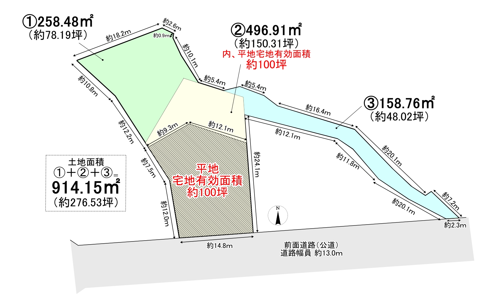 (※内、平地の宅地有効面積は約100坪)